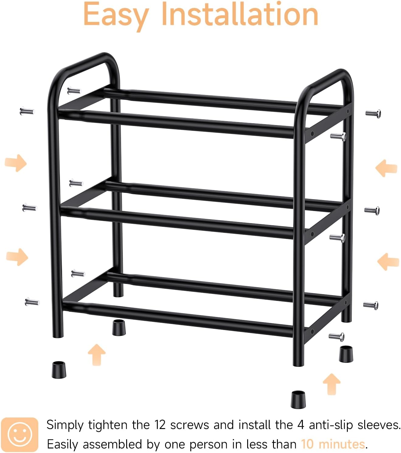 - Easy To Assemble: Easy to install, no tools required, you just need a few minutes to tighten a few screws by hand, then you can assemble this small shoe rack quickly and easily. The package includes a shoe rack and a detailed installation instruction, if you don’t know how to install it, you can read the instruction first before installing it