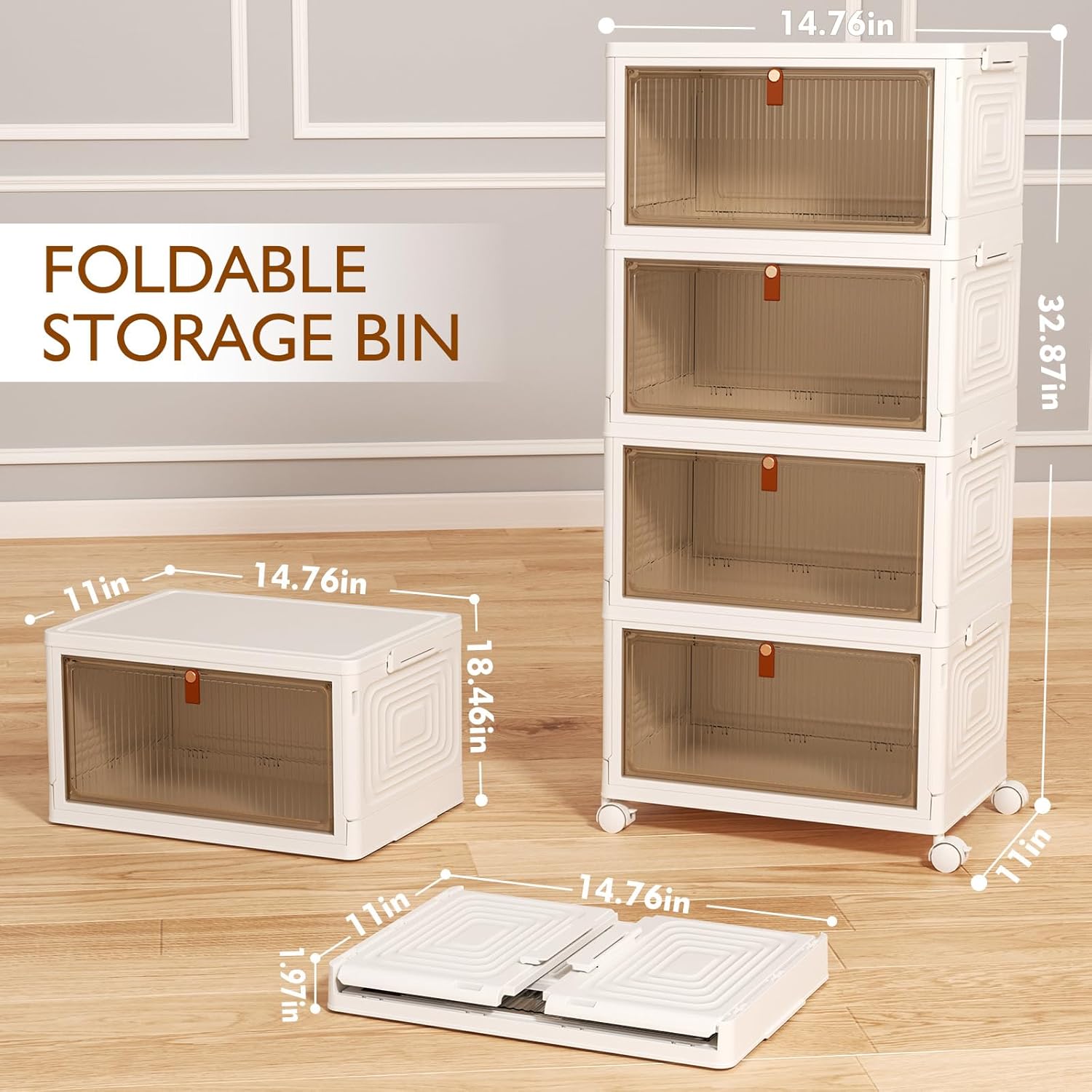 - 【Foldable and Installation-Free】Stackable Storage Box with Lid is a foldable and installation-free storage box. When not in use, it folds flat and you don’t need to keep instructions to remember how to assemble and reassemble it, or use tools to operate it